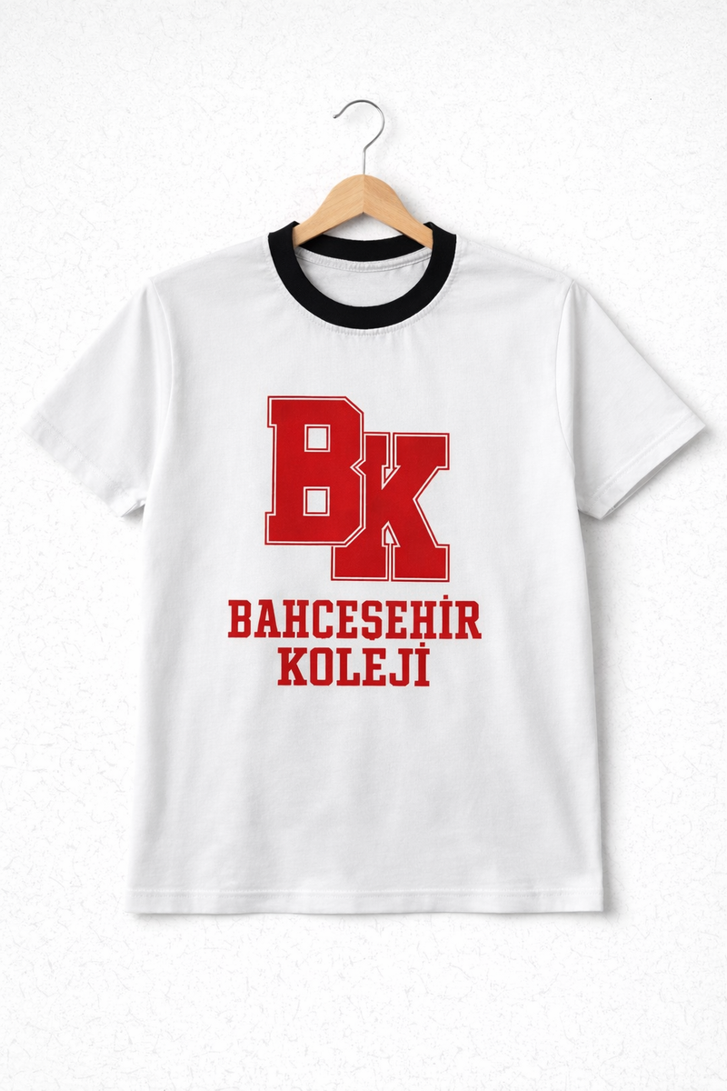 Bahçeşehir Siyah Yaka Kırmızı Logolu Beyaz T-Shirt